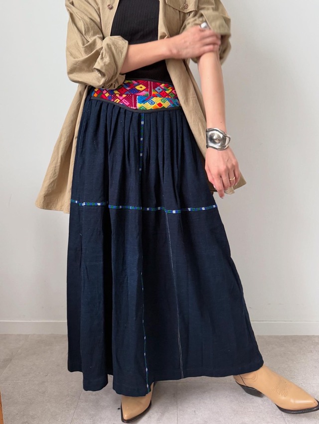 グアテマラのハンドメイドのスカートです。 ウエスト部分にはボリュームのあるカラフルな刺繍が施されており、ベルトのようにアクセントになります。 【 SIZE 】 ウエスト 31cm(後ろ半分はゴムの為フリーサイズです) 着丈 88cm 【 MATERIAL 】 cotton 【 着用モデル身長 】 156cm ※商品のカラーは、着画ではない写真をご参考くださいませ。 ※平置き採寸になりますので若干のずれが生じる場合がございます。予めご了承下さい。 【 Condition: B】 生地は元々ネップのような生地感となっております。 当店では、古着・vintageを取り扱いしております。 (Condition Rank) S 新品・未使用品 A 使用感やダメージがほぼ見受けれない状態 B 多少の使用感が見受けられるが、さほど気にならないと判断できる状態 C 使用感があり、多少のダメージがある品。 D 使用感があり、目立ったダメージがある状態。 ※一部を除いて、当店では古着・ヴィンテージを扱っておりますため、古着においてご理解頂ける方のみご購入下さいますようお願い致します。 《注意事項》 ◆掲載商品の画像に関しまして、ご覧になっているブラウザやパソコン等の環境により、実際のカラーと異なる場合がございます。あらかじめご了承ください。 ◆ご注文後の内容変更、キャンセルは一切お受けできません。掲載内容(サイズ・画像のカラー)と実際の商品との若干のズレに関しましても返品対応しかねます。 ◆注文内容と異なる商品をお届けした場合、当店の過失の場合には返品対応致します。その際ご返送前にご連絡くださいませ。尚、返品対応期間は商品到着後、5日以内とさせて頂きます。それ以降になりますとご対応出来かねますので、あらかじめご了承ください。 ◆お支払いは現在クレジットカード決済、又はキャリア決済がご利用頂けます。 配送方法は下記になります。 ◆ご注文後3~5日以内の配送を予定しております。 ◆ヤマト運輸の為、配送日時指定できます。指定される場合ご注文の際の備考欄にご記入ください。尚、指定日はご注文後3~7日の間で承ります。 希望のない場合は最短日にてお届け致します。 土日は発送業務を休止しておりますので、翌営業日の発送となります。 ◆配送後、期間以内にお受け取りされない場合、商品は当社まで返送されます。当社返送後の再配達をご希望の場合には、再配達の往復費用がお客様のご負担となりますのでご注意ください。 ◆販売前に全体をチェックし色落ちやダメージ等(商品としての味としての風合いと判断した場合を除く)は記載しますが、稀に僅かなダメージを見落とす場合もございます。 ご了承くださいませ。