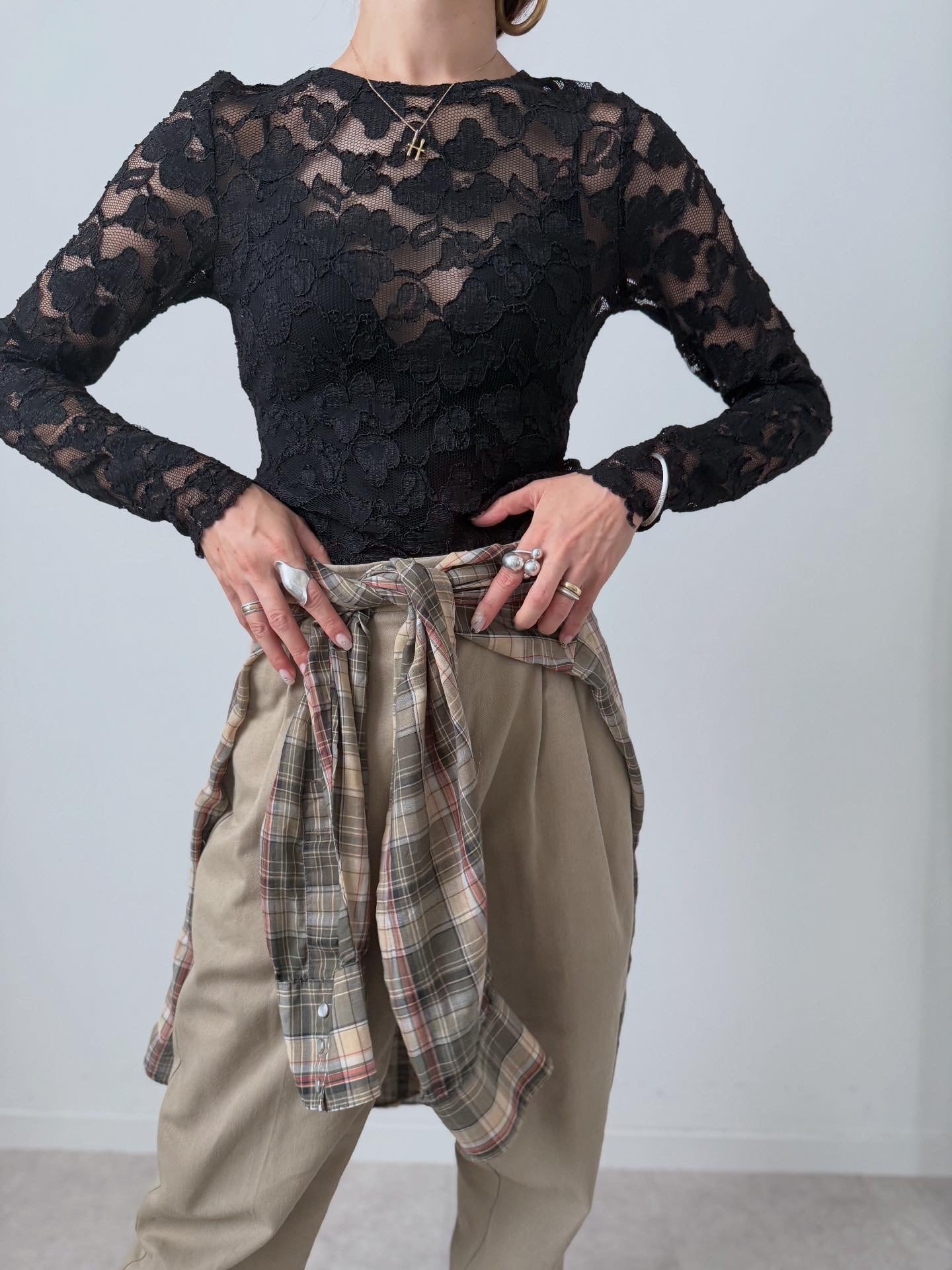 上からビスチェやスカーフ、ジャケットなどを羽織ってレイヤードも楽しめる1着となっております。