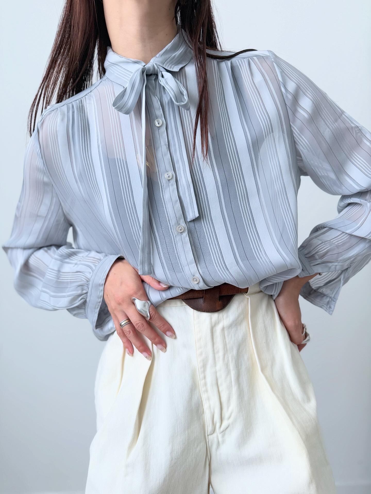 程よく透け感のあるブラウスです。