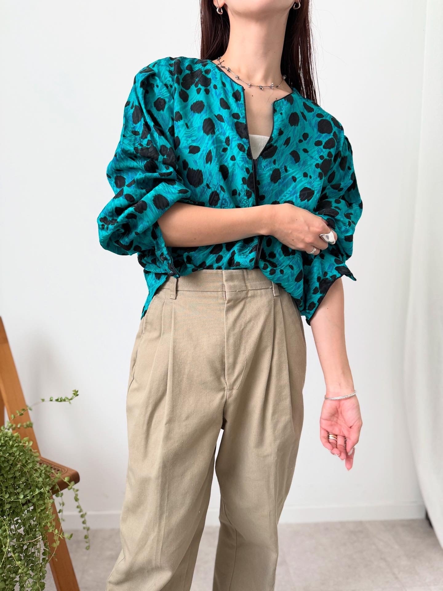 シルク素材で肌触りもよく、シンプルなシルエットのブラウスです。