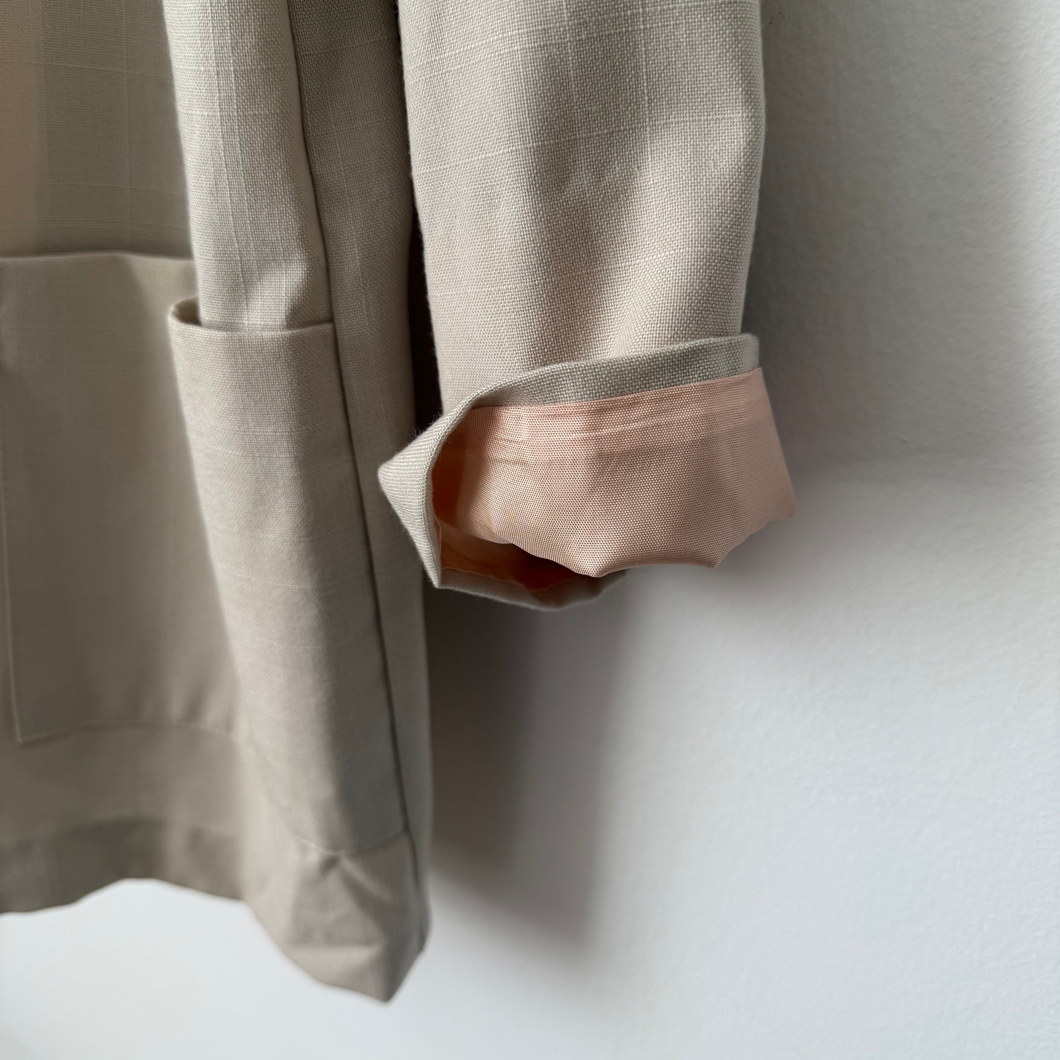 袖口のみサテンの裏地が付いておりますので、捲って少しチラ見えさせてもアクセントになります。