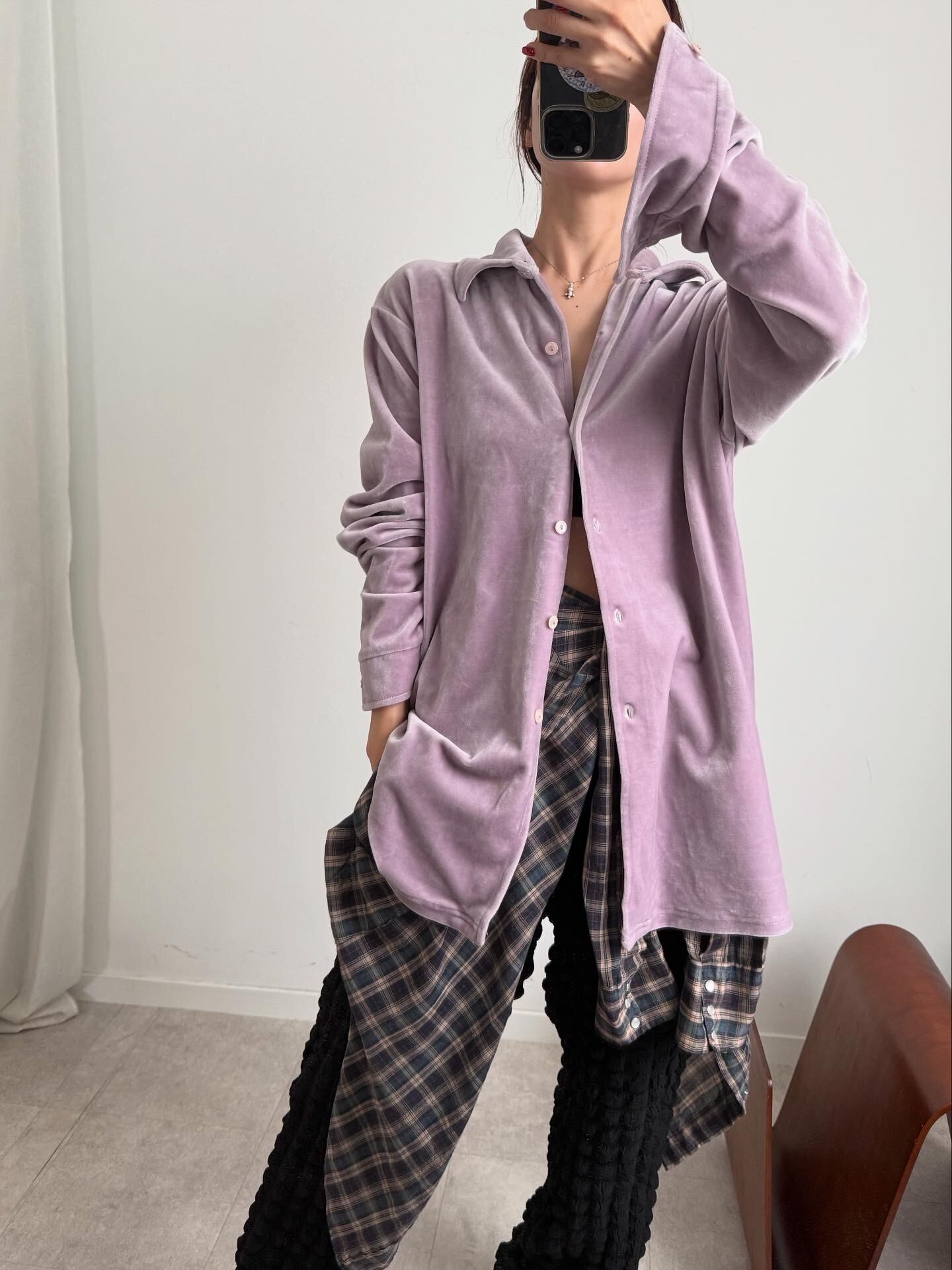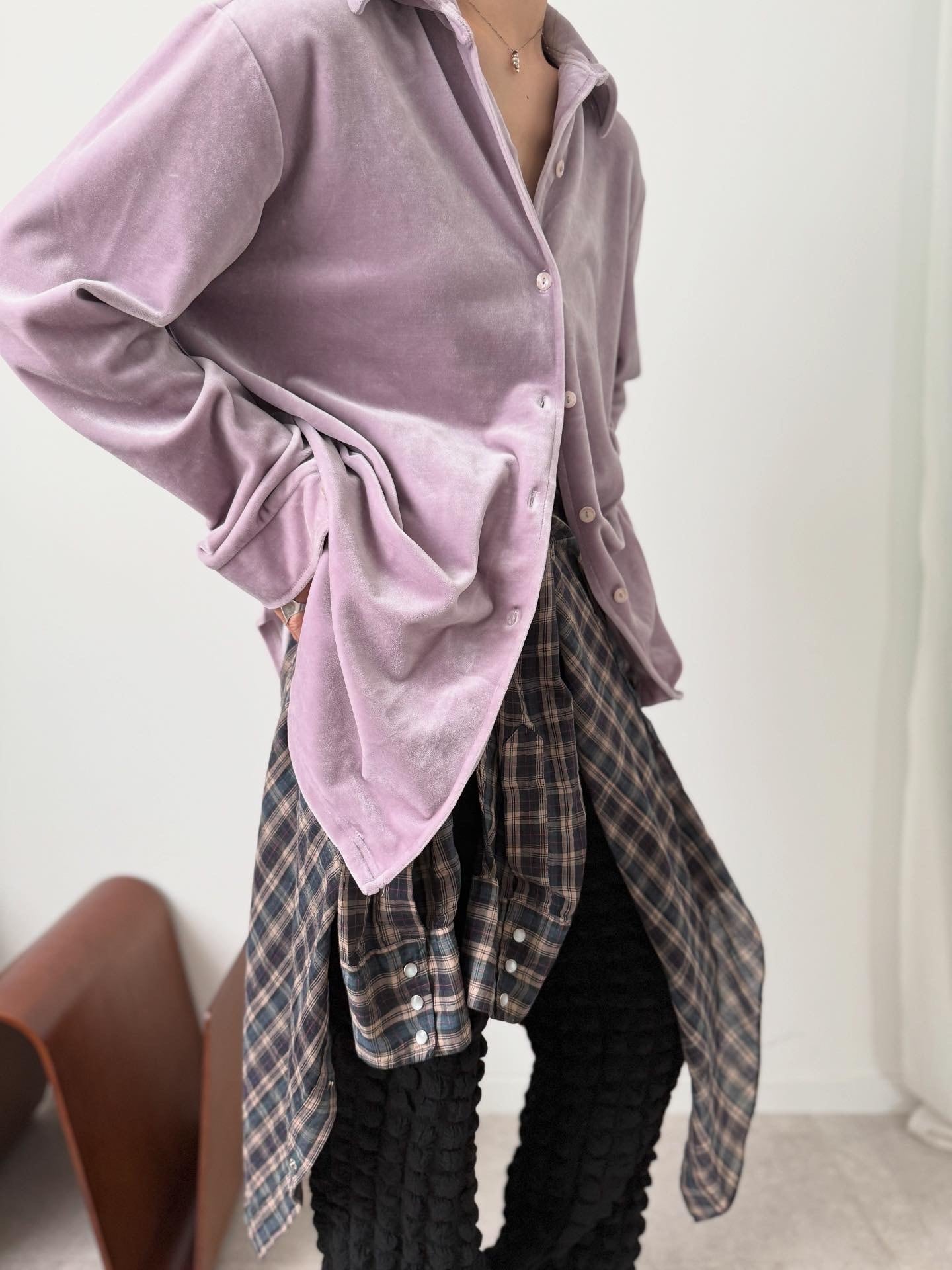 ベロア素材のゆったりとしたサイズ感のシャツです。