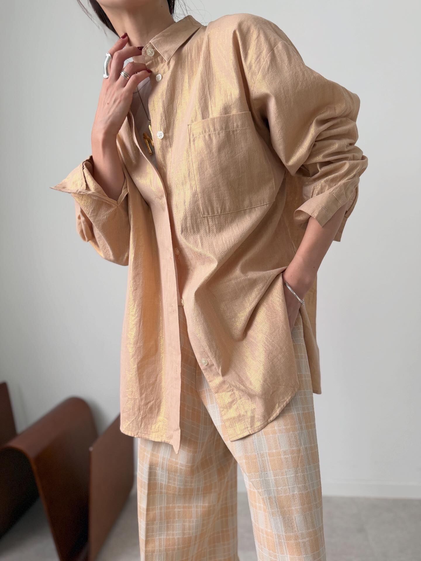 程よく光沢感のあるシャツです。