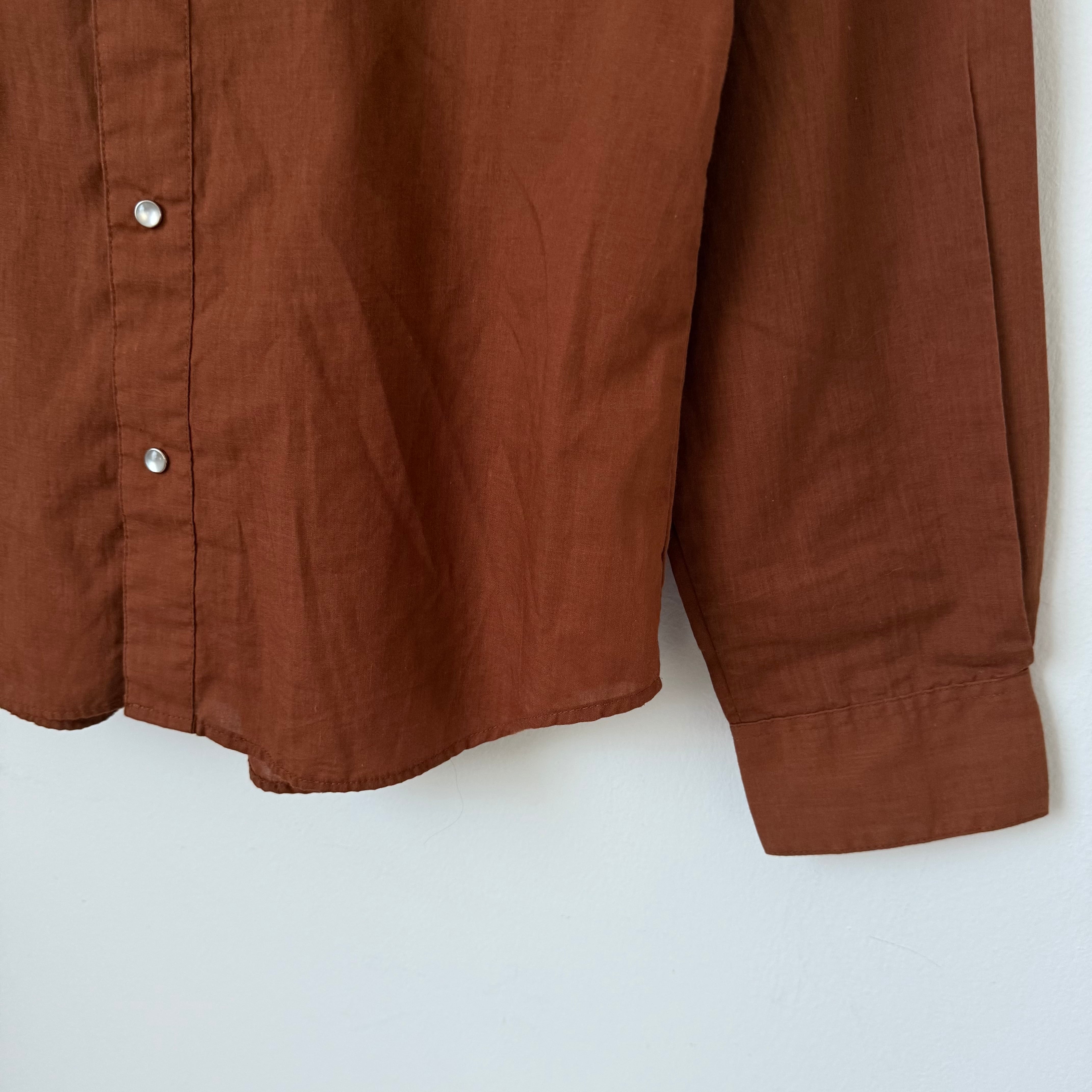柔らかな薄手のシャツになるので、ジャケットやアウターなども着やすい素材感となっています。