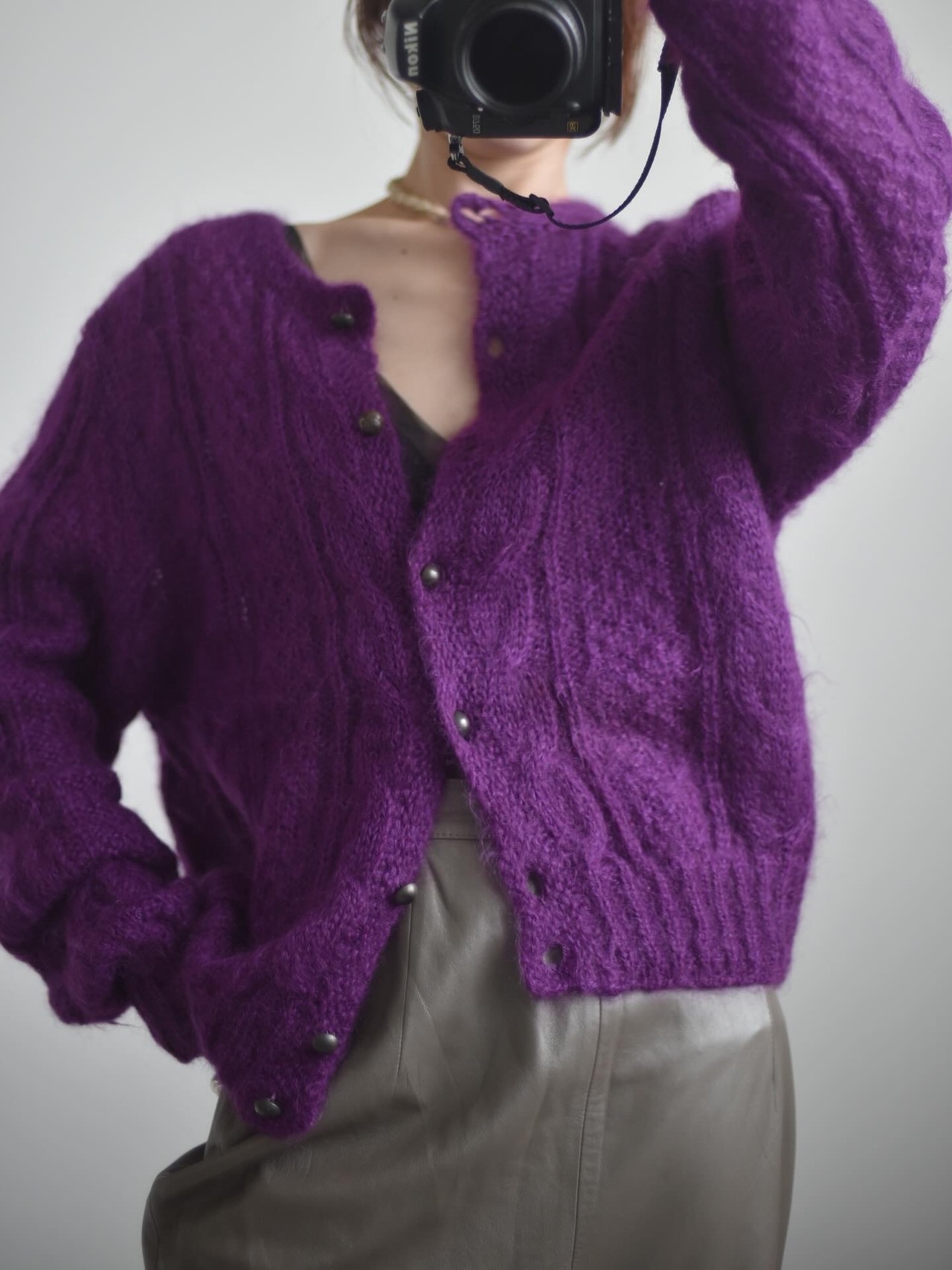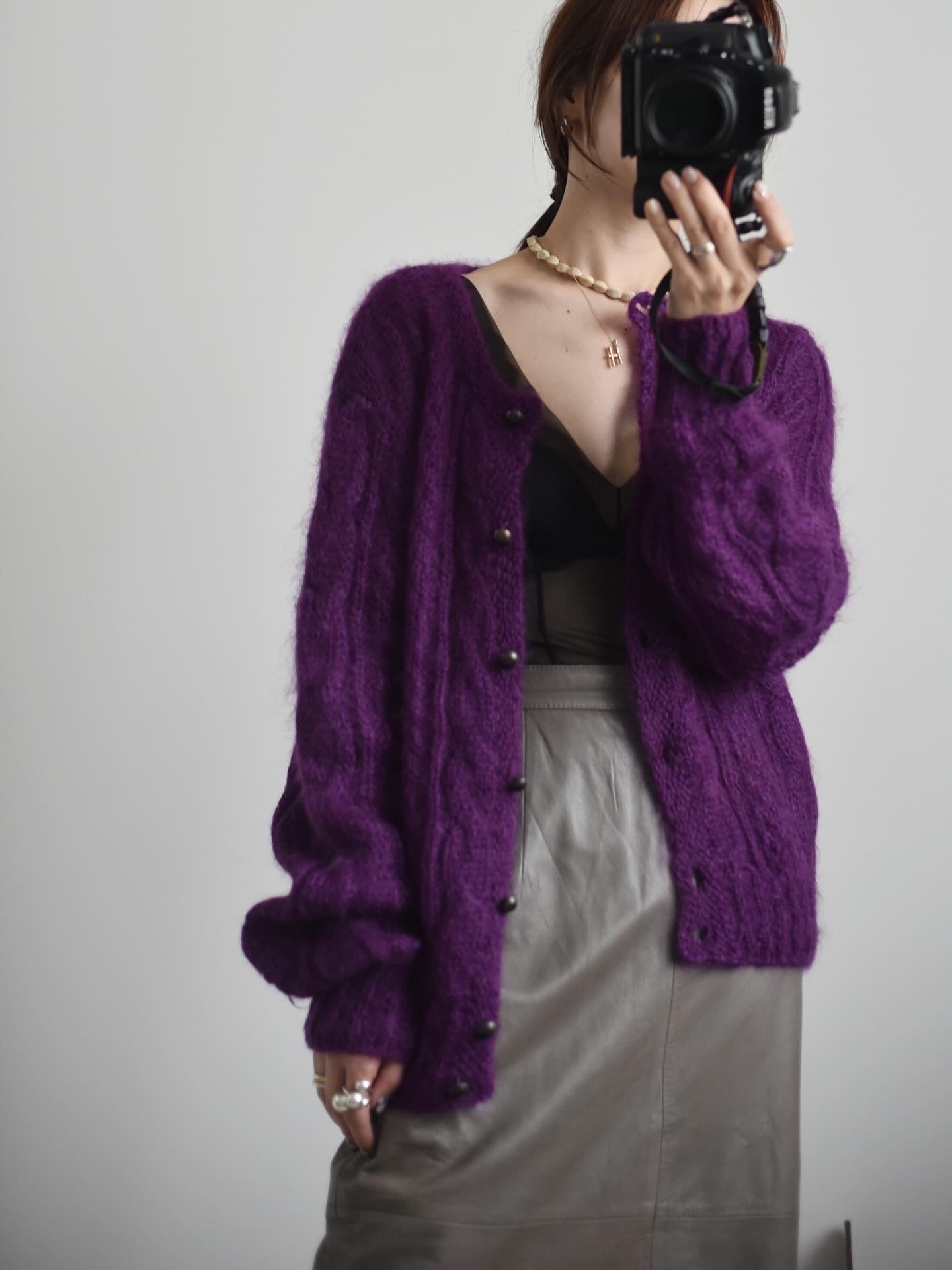 モヘアらしい毛足の長めのカーディガンです。