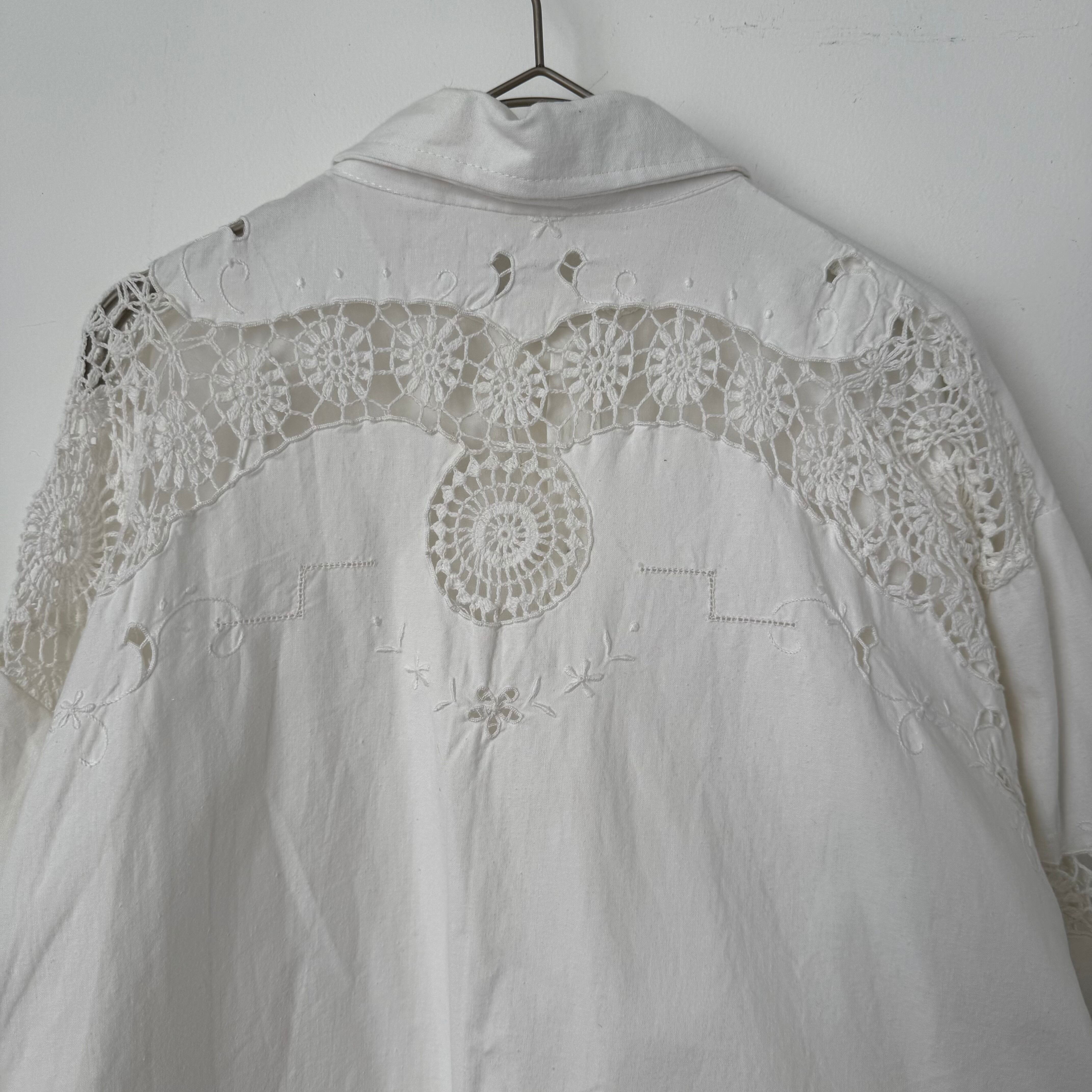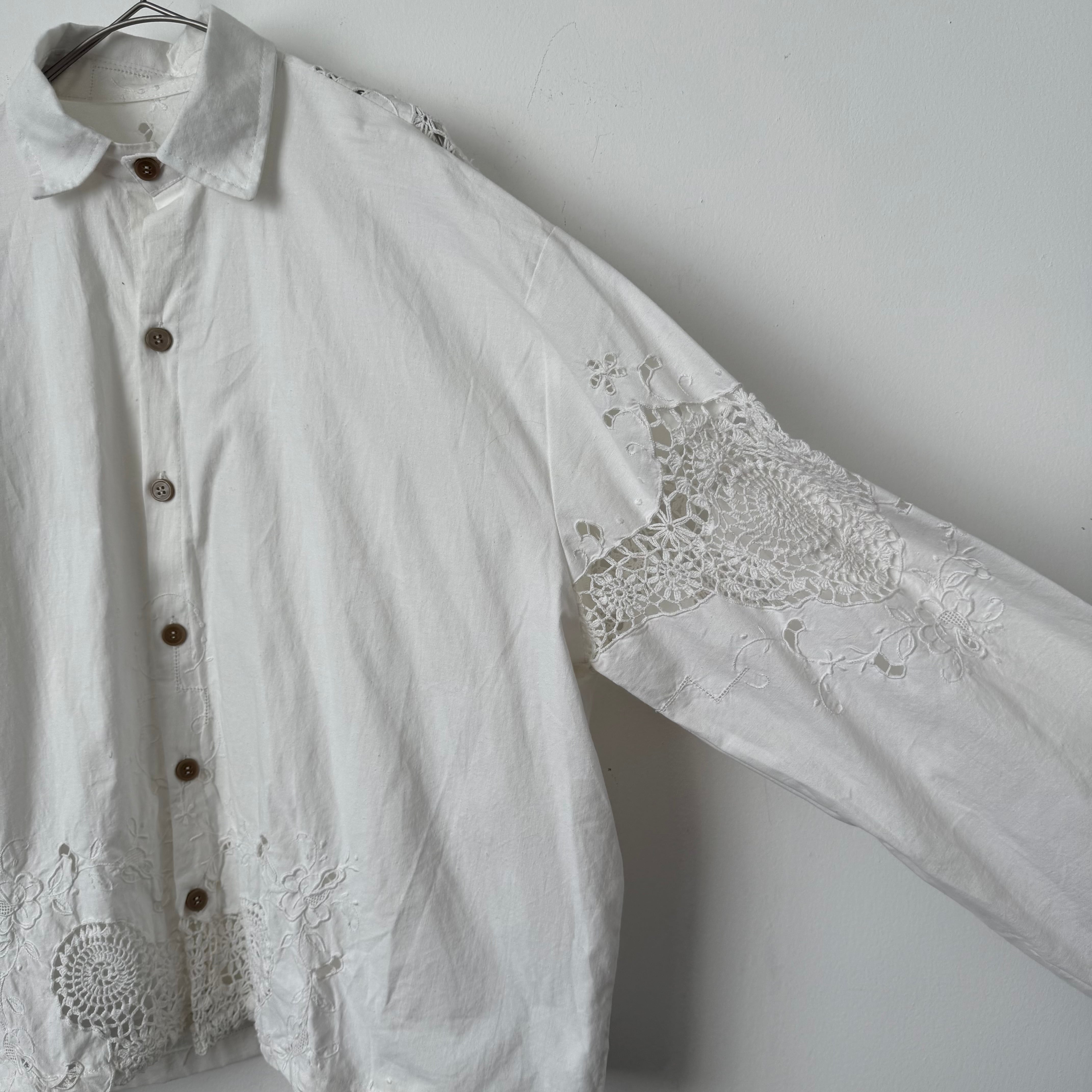 ヴィンテージレースを使ったリメイクシャツです。