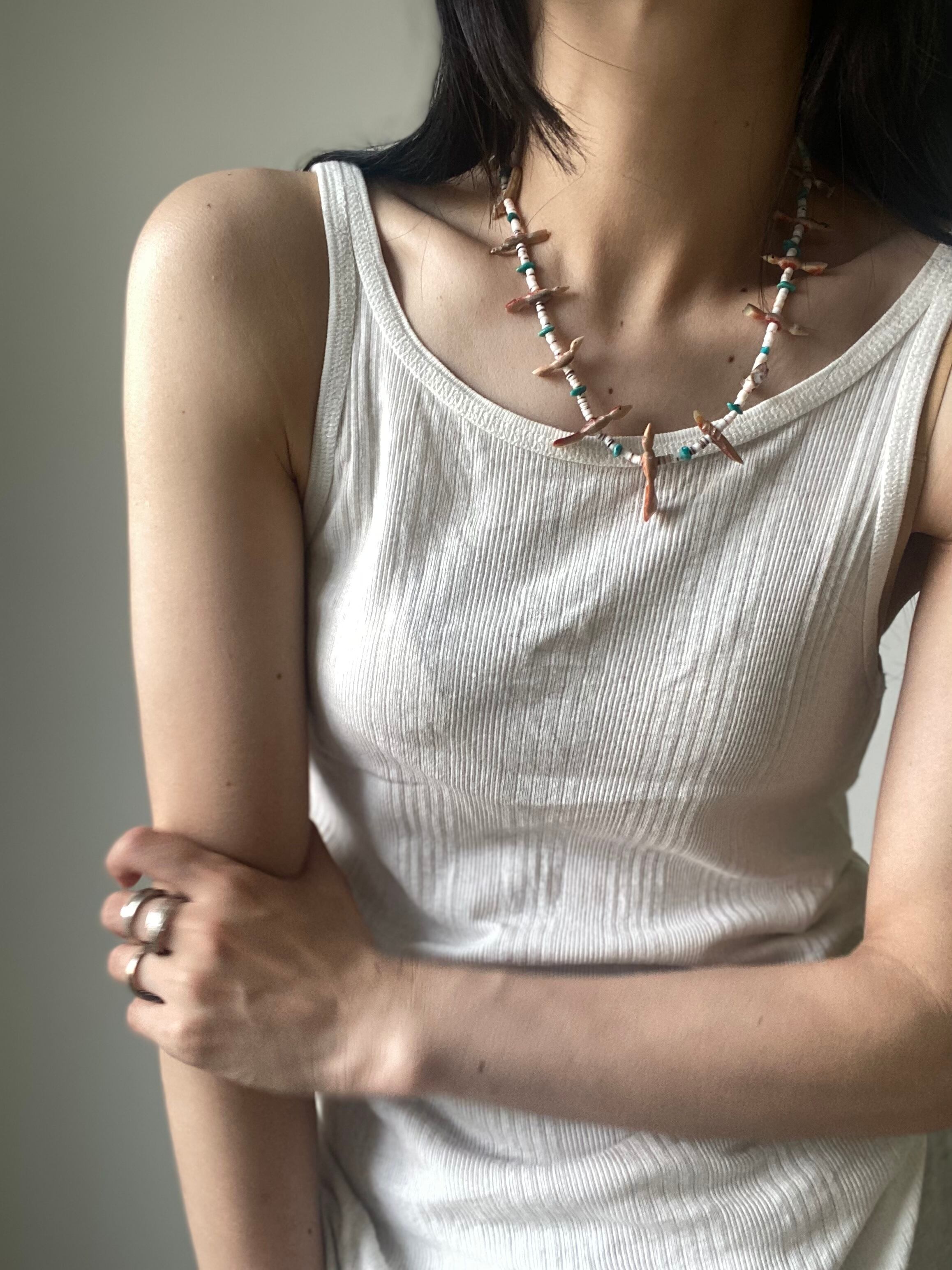 インディアンにとって聖なる物の精霊や動物をかたどったお守りのようなネックレスです。
